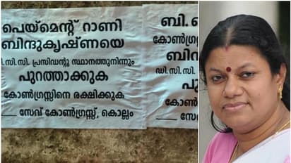 ബിന്ദുകൃഷ്ണ ബിജെപിയുടെ ഏജന്റാണ്, പേയ്മെന്റ് റാണിയായ ബിന്ദുകൃഷ്ണ കോണ്ഗ്രസിന്റെ ശത്രുവാണെന്നും പാര്ട്ടിയില് നിന്ന് പുറത്താക്കണമെന്നും പോസ്റ്ററില് ആവശ്യപ്പെടുന്നു. കൊല്ലം ഡിസിസി ഓഫീസിനും ആർ.എസ്.പി ഓഫീസിനും മുന്നിലാണ് പോസ്റ്റർ പ്രത്യക്ഷപ്പെട്ടിരിക്കുന്നത്.