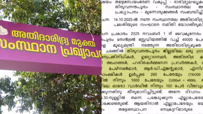 ആളുകളെ പങ്കെടുപ്പിക്കാൻ അനുമതി തേടികൊണ്ടുള്ള കത്താണെന്നും അത് സ്വഭാവികമായ നടപടി മാത്രമാണെന്നുമാണ് മന്ത്രി എംബി രാജേഷ് വിശദീകരിച്ചത്. അതിദാരിദ്ര മുക്ത പ്രഖ്യാപന സമ്മേളനത്തിനായി ഫണ്ട് വകമാറ്റിയെന്ന ആരോപണത്തിനും മന്ത്രി എംബി രാജേഷ് മറുപടി നൽകി. ബജറ്റ് വിഹിതത്തിലെ ചെറിയ തുകയാണ് പ്രഖ്യാപന സമ്മേളനത്തിനായി ചെലവാക്കുന്നതെന്നും വീട് നിർമാണത്തിനുള്ള ഫണ്ട് ഉപയോഗിക്കുന്നുവെന്ന റിപ്പോർട്ട് അസംബന്ധമാണെന്നും മന്ത്രി എംബി രാജേഷ് ഏഷ്യാനെറ്റ് ന്യൂസിനോട് പറഞ്ഞു.