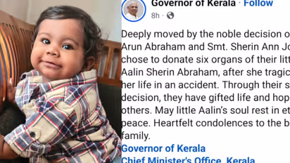 തിരുവനന്തപുരം: പത്തു മാസം പ്രായമുള്ള കുഞ്ഞ് ആലിൻ ഷെറിൻ എബ്രഹാമിന്റെ അവയവങ്ങൾ ദാനം ചെയ്തതില് മാതാപിതാക്കളെ അഭിനന്ദിച്ച് ഗവര്ണര്. ജീവിതത്തിലെ ഏറ്റവും വേദനനിറഞ്ഞ നിമിഷത്തിലും കുഞ്ഞു മകളുടെ അവയവങ്ങൾ മറ്റുള്ളവർക്ക് നൽകാൻ തീരുമാനിച്ച മാതാപിതാക്കളുടെ തീരുമാനം അഭിനന്ദനാര്ഹമാണെന്ന് സാമൂഹിക മാധ്യമത്തില് ഗവര്ൺര് കുറിച്ചു. അപകടത്തിൽ ദാരുണമായി ജീവൻ നഷ്ടപ്പെട്ട കൊച്ചു മാലാഖയായ ആലിൻ ഷെറിൻ എബ്രഹാമിന്റെ അവയവങ്ങൾ ദാനം ചെയ്യാൻ തീരുമാനിച്ചഅരുൺ എബ്രഹാമിന്റെയും ഷെറിൻ ആൻ ജോണിന്റെയും ഉദാത്തമായ തീരുമാനം എന്നെ വളരെയധികം സ്പർശിച്ചുവെന്നും ആ നിസ്വാർത്ഥ തീരുമാനത്തിലൂടെ, അവർ മറ്റുള്ളവർക്ക് ജീവിതവും പ്രത്യാശയും സമ്മാനിച്ചു. ആലിന്റെ ആത്മാവിന് നിത്യശാന്തി നേരുന്നു. ദുഃഖിതരായ കുടുംബത്തിന് ഹൃദയം തൊട്ട് അനുശോചനം എന്നുമാണ് ഗവര്ണര് കുറിച്ചത്.