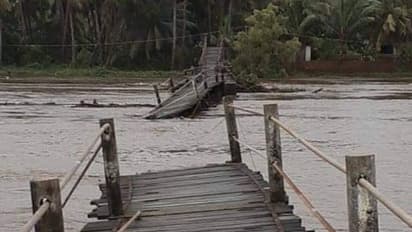 കാസര്കോട്: കേരളത്തിലെ ഏറ്റവും വലിയ നടപ്പാലമായ കാസര്കോട് അച്ചാംതുരുത്തി - കോട്ടപ്പുറം നടപ്പാലത്തിന്റെ ഒരു ഭാഗം കനത്ത മഴയിലും വെള്ളപാച്ചിലിലും ഒലിച്ചു പോയി. ഏത് സമയത്തും തകര്ന്ന് വീഴുമെന്ന നിലയിലായിരുന്നു ഈ നടപ്പാലം. നീലേശ്വരം നഗരസഭയെയും ചെറുവത്തൂർ പഞ്ചായത്തിനെയും ബന്ധിപ്പിക്കുന്നതാണ് ഈ നടപ്പാലം.
