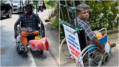 കോഴിക്കോട്: കൈ കൊണ്ട് കറക്കുന്ന വീല്ചെയര് ഉന്തി കണ്ണന് 17ാം ദിവസവും യാത്ര തുടരുമ്പോള് ദൂരം മനക്കരുത്തിന് വഴിമാറുകയാണ്. മലപ്പുറം എടവണ്ണപ്പാറ സ്വദേശിയായ 49കാരൻ കണ്ണന്റെ, കര്ണ്ണാടകയിലെ മൂകാംബിക ക്ഷേത്രത്തിലേക്കുള്ള യാത്രയാണ് കണ്ടുനില്ക്കുന്നവരില് ആശ്ചര്യമുണര്ത്തുന്നത്. അപകടത്തില് പരിക്കേറ്റ് ഒരു കാല് മുറിച്ചുമാറ്റേണ്ടി വന്നു. രണ്ടാമത്തെ കാലിലെ സ്വാധീനക്കുറവും ഈ മധ്യവയസ്കനിലെ നിശ്ചയദാര്ഢ്യത്തെ തളര്ത്താനായില്ല. യാത്ര 17ാം ദിവസം എത്തിനില്ക്കുമ്പോള് കാസര്കോട് ടൗണില് നിന്നും ആറ് കിലോമീറ്റര് അകലെയാണ് ഇദ്ദേഹമിപ്പോള് ഉള്ളത്.