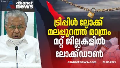 തൃശ്ശൂർ, എറണാകുളം, തിരുവനന്തപുരം ജില്ലകളിൽ ടിപിആർ 25 ശതമാനത്തിന് താഴെ വരികയും ആക്ടീവ് കേസുകൾ കുറയുകയും ചെയ്ത സാഹചര്യത്തിലാണ് നാളെ മുതൽ ട്രിപ്പിൽ ലോക്ക് ഡൗൺ ഒഴിവാക്കുന്നത്. മലപ്പുറത്ത് ടെസ്റ്റ് പോസിറ്റിവിറ്റി റേറ്റ് കുറയാത്തതാണ് ആശങ്കയുയർത്തുന്നത്. കൂടുതൽ ശക്തമായ നടപടികൾ ജില്ലയിൽ വേണ്ടിവരുമെന്ന് മുഖ്യമന്ത്രി പറഞ്ഞു. ക്രമസമാധാന ചുമതലയുള്ള എഡിജിപി മലപ്പുറത്തേക്ക് പോകുമെന്നും ജില്ല കേന്ദ്രീകരിച്ച് പ്രവർത്തിക്കുമെന്നും മുഖ്യമന്ത്രി അറിയിച്ചു. ഉത്തരമേഖല ഐജിയും മലപ്പുറത്ത് ക്യാമ്പ് ചെയ്യും