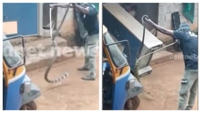 കോട്ടയം: കോട്ടയം കോരുത്തോട് വീട്ടിലെ അലമാരയ്ക്ക് അകത്ത് രാജവെമ്പാല. കോരുത്തോട് സ്വദേശി സത്യൻ മുത്തേരിയുടെ വീട്ടിലാണ് രാജവെമ്പാല കയറിയത്. വനം വകുപ്പ് ഉദ്യോഗസ്ഥർ എത്തി പാമ്പിനെ പിടികൂടി. അലമാര വീടിന് പുറത്തിറക്കിയാണ് പാമ്പിനെ പിടിച്ചത്. ഇന്നലെ വൈകിട്ടാണ് സംഭവം. തുണിയെടുക്കാൻ അലമാര തുറന്നപ്പോഴാണ് ഉള്ളിൽ രാജവെമ്പാലയെ കണ്ടത്. ഭയന്ന് പുറത്തേക്കോടിയ കുടുംബാംഗങ്ങൾ വനംവകുപ്പിനെ വിവരമറിയിച്ചു. മുണ്ടക്കയത്ത് നിന്നുള്ള വനംവകുപ്പിന്റെ ആർആർടി സംഘം എത്തിയാണ് രാജവെമ്പാലയെ പിടികൂടിയത്.