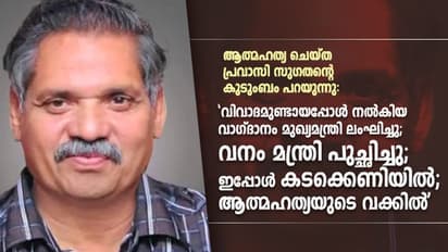 തിരുവനന്തപുരം: 'ഉടന് ലൈസന്സ് നല്കുമെന്ന മുഖ്യമന്ത്രിയുടെ വാക്ക് വിശ്വസിച്ചാണ് വീണ്ടും നിര്മ്മാണ പ്രവര്ത്തനങ്ങളുമായി മുന്നിട്ടിറങ്ങിയത്. ലൈസന്സ് കിട്ടുമെന്ന് കരുതി കടം വാങ്ങിച്ചുവരെ ഇതില് നിക്ഷേപിച്ചു. ഇപ്പോള് വലിയ കടമുണ്ട്. ഒപ്പം എന്റെ വിസ ക്യാന്സലായി, മസ്ക്കറ്റിലെ വര്ക്ക്ഷോപ്പും പോയി. സര്ക്കാരും കൈമലര്ത്തുന്നു. അച്ഛനെപ്പോലെ ആത്മഹത്യ ചെയ്യുക മാത്രമാണ് ഇപ്പോള് മുന്നിലുള്ള വഴി'- ഉള്ളു കലങ്ങിയ സ്വരത്തില് ഇങ്ങനെ പറയുന്നത് പുനലൂര് വാളക്കോട് സ്വദേശി സുജിത്ത്. ഉള്ളതെല്ലാം വിറ്റുപെറുക്കി നാട്ടില് വര്ക്ക് ഷോപ്പ് തുടങ്ങാനുള്ള ശ്രമങ്ങള്ക്കിടെ, പാടംനികത്തിയെന്ന് ആരോപിച്ച് എ ഐ വൈ എഫ് പ്രവര്ത്തകര് കൊടികുത്തി പ്രതിഷേധിച്ചതിനെ തുടര്ന്ന്, കഴിഞ്ഞ വര്ഷം ആത്മഹത്യ ചെയ്ത പ്രവാസി സുഗതന്റെ മകന്. കണ്ണൂര് ആന്തൂരില് പ്രവാസി വ്യവസായിയായ സാജന് പാറയില് ജീവനൊടുക്കിയ സംഭവം കേരളം ചര്ച്ച ചെയ്യുന്നതിനിടെയാണ്, സമാനമായ സാഹചര്യത്തില് ആത്മാഹുതി ചെയ്യേണ്ടി വന്ന സുഗതന്റെ കുടുംബം ഏഷ്യാനെറ്റ് ന്യൂസ് ഓണ്ലൈനിനോട് മനസ്സു തുറന്നത്.