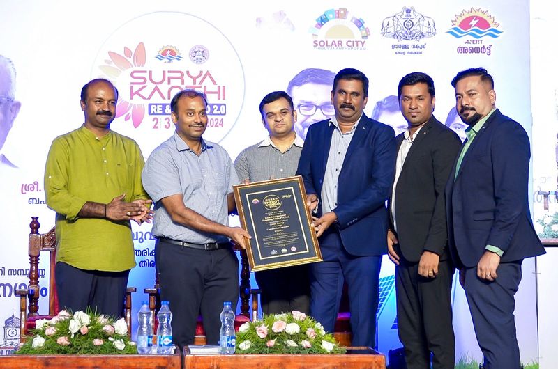 ഫോട്ടോ ക്യാപ്ഷന് : അനെര്ട്ട് - ഇ കെ എൽ ഗ്രീന് എനര്ജി അവാര്ഡ് അനെര്ട്ട് സിഇഒ നരേന്ദ്രനാഥ് വേലൂരിയില് നിന്ന് ലുലു മാള് ചീഫ് എഞ്ചിനീയര് സുധീപ് ഇ.എ, മാള് മാനേജര് അഖില് കെ ബെന്നി, ലുലു ഗ്രൂപ്പ് പബ്ലിക് റിലേഷന്സ് മാനേജര് സൂരജ് അനന്തകൃഷ്ണന് എന്നിവര് ഏറ്റുവാങ്ങുന്നു.