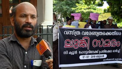 കോഴിക്കോട്: ലുങ്കി ഉടുത്തതിന്റെ പേരില് പ്രവേശനം നിഷേധിച്ച കോഴിക്കോട്ടെ സ്വകാര്യ ഹോട്ടലിനെതിരെ സാംസ്കാരിക പ്രവര്ത്തകർ 'ലുങ്കി സമരം' നടത്തി. ഹോട്ടലിന് മുന്നിൽ ലുങ്കി തൂക്കിയാണ് സമരക്കാർ പ്രതിഷേധം സംഘടിപ്പിച്ചത്. പ്രതിഷേധത്തിന്റെ പശ്ചാത്തലത്തിൽ ഹോട്ടലിന് പൊലീസ് സംരക്ഷണം ഏർപ്പെടുത്തിയിരുന്നു.