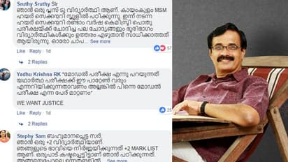 പരീക്ഷ ആരംഭിക്കുന്നതിന് മുന്നോടിയായി വിദ്യാര്ഥികള്ക്ക് ആത്മവിശ്വാസം പകരാനായി വിദ്യാഭാസ മന്ത്രി സി രവീന്ദ്രനാഥ് പോസ്റ്റ് ചെയ്ത വീഡിയോ മുതല് ഇങ്ങോട്ടുള്ള എല്ലാ കുറിപ്പുകളിലും വിദ്യാര്ഥികളുടെ കമന്റുകളുടെ കൂട്ടക്കരച്ചിലാണ് ദൃശ്യമാകുന്നത്. ചിരിച്ചുകൊണ്ട് പതറാതെ വിസ്തരിച്ച് ഉത്തരമെഴുതണമെന്ന് വീഡിയോയിലൂടെ പറഞ്ഞ വിദ്യാഭ്യാസ മന്ത്രിയോട് ഇത്തരം ചോദ്യങ്ങളാണെങ്കില് ആരും കരഞ്ഞുപോകുമെന്നാണ് വിദ്യാര്ഥികള് പറയുന്നത്. വിദ്യാര്ഥികള് മാത്രമല്ല രക്ഷിതാക്കളും പരാതിയുമായി രംഗത്തെത്തിയിട്ടുണ്ട്. പരീക്ഷ വീണ്ടും നടത്തുന്നതിനെക്കാള് നല്ലത് ഉദാരമായി മാര്ക്ക് നല്കുകയാണെന്ന അഭിപ്രായവും ചിലര് പങ്കുവച്ചിട്ടുണ്ട്.