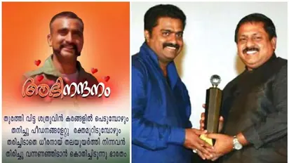യുദ്ധത്തടവുകാരോടുള്ള ക്രൂരമായ പെരുമാറ്റത്തിന് കുപ്രസിദ്ധമായ പാക് സൈന്യത്തിന്റെ കസ്റ്റഡിയില് പോലും ആത്മവീര്യം കൈവിടാതെ നിന്ന വിങ്ങ് കമാന്ഡര് അഭിനന്ദന് വര്ദ്ധമാന് കവിതയിലൂടെ ആദരവ് നൽകി സോഹൻ റോയ്. ചലച്ചിത്രസംവിധായകനും ഡോക്യുമെന്ററി നിർമ്മാതാവുമായ സോഹൻ റോയിയുടെ വരികൾ സംഗീത സംവിധായകൻ ബി ആർ ബിജുറാം ആലപിച്ചത് സോഷ്യൽ മീഡിയയിൽ വൈറലാവുകയാണ്.