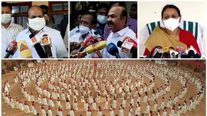 അതേസമയം, തിരുവനന്തപുരത്ത് പാറശ്ശാലയിൽ സിപിഎം സമ്മേളനത്തിന് മുന്നോടിയായി 500-ൽ പരം സ്ത്രീകളെ പങ്കെടുപ്പിച്ച് നടന്ന മെഗാ തിരുവാതിര തെറ്റ് തന്നെയെന്ന് ആരോഗ്യമന്ത്രി വീണാ ജോർജും സമ്മതിക്കുന്നു. അനുമതിയോട് കൂടിയാണ് സിപിഎം ജില്ലാ സമ്മേളനങ്ങൾ എന്നാണ് ഇതേക്കുറിച്ച് ചോദ്യമുയർന്നപ്പോൾ മന്ത്രി സൂചിപ്പിച്ചത്. കൊവിഡ് വ്യാപനം കുത്തനെ കൂടുന്നതിനിടെ, സിപിഎം സമ്മേളനങ്ങളിൽ ആൾക്കൂട്ടമുണ്ടായതും, മെഗാ തിരുവാതിര നടത്തിയതും തെറ്റ് തന്നെയാണെന്ന് ആരോഗ്യമന്ത്രി പറഞ്ഞു. ''തെറ്റ് ആര് ചെയ്താലും തെറ്റാണ്. പാർട്ടി ഇക്കാര്യം തെറ്റാണെന്ന് പറഞ്ഞിട്ടുണ്ട്. കൊവിഡ് പ്രോട്ടോക്കോൾ പാലിച്ചേ ഏത് പരിപാടിയും നടത്താവൂ എന്ന് ആരോഗ്യവകുപ്പ് നിഷ്കർഷിച്ചിരുന്നതാണ്. എല്ലാവരും ഇത് പാലിക്കണം. സിപിഎമ്മും ഇതിനുള്ള നടപടിയെടുത്തു'', മന്ത്രി പറയുന്നു.