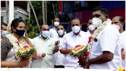 വഴിയരികിലെ വിവാഹം സത്യമാണെന്ന് ചിലര് ധരിച്ചു. മാലയിടലും ബൊക്ക കൈമാറ്റവും കഴിഞ്ഞപ്പോഴാണ് സംഗതി പ്രതീകാത്മക സമരമാണെന്ന് ആളറിയുന്നത്. ഈ സമയം ബീവറേജ് ഷോപ്പിന് മുന്നില് നൂറിലേറെ പേര് മദ്യം വാങ്ങാനായി ക്യൂ നില്ക്കുന്നുണ്ടായിരുന്നു.