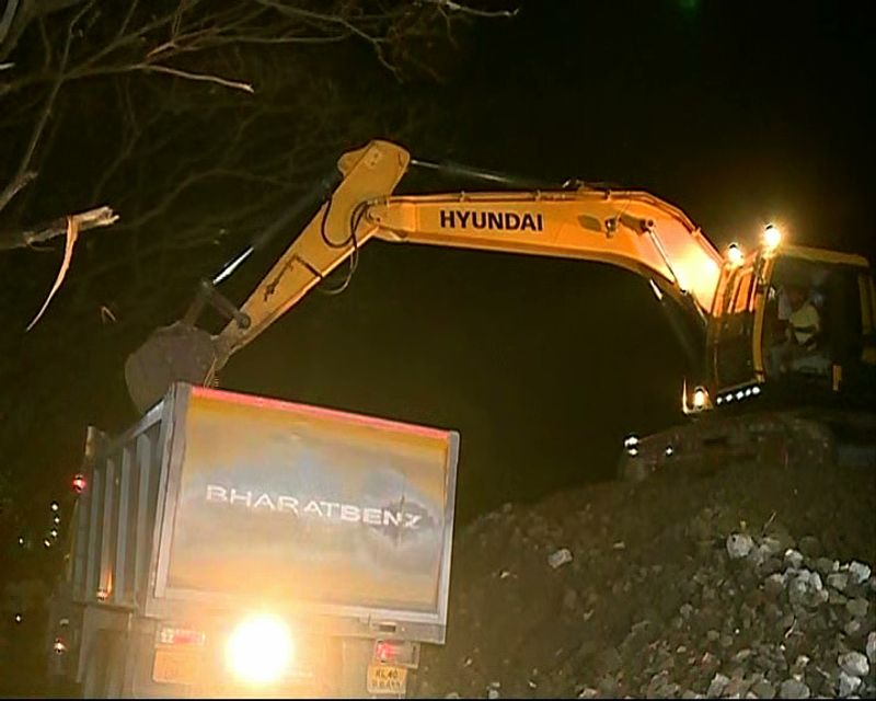 ജെസിബി ഉപയോഗിച്ച് അവശിഷ്ടങ്ങൾ നീക്കുന്നു
