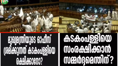 പ്രതിപക്ഷത്തിന് വിഷയം ചർച്ച ചെയ്യേണ്ടി വരുമെന്ന ഭയമാണ്. ഇത് ഭീരുത്വമാണെന്നും തിണ്ണമിടുക്ക് കാണിക്കുന്നുവെന്നും എംബി രാജേഷ് പറഞ്ഞതോടെ പ്രതിപക്ഷം ബഹളം വെച്ച് നടുത്തളത്തിലിറങ്ങി. ഇതോടെ പ്രതിരോധിക്കാൻ ഭരണപക്ഷ എംഎൽഎമാരും എഴുന്നേറ്റ് നിന്നു. ബാനർ കൊണ്ട് സ്പീക്കറുടെ ഇരിപ്പിടം മറച്ചു കൊണ്ടാണ് പ്രതിപക്ഷത്തിൻ്റെ പ്രതിഷേധം. രൂക്ഷമായ വാദപ്രതിവാദങ്ങളാണ് സഭയിൽ നടക്കുന്നത്. പോറ്റി പാട്ടും പ്ലക്കാർഡുകളിൽ ഉൾപ്പെടുത്തിയാണ് പ്രതിപക്ഷത്തിൻ്റെ പ്രതിഷേധം.