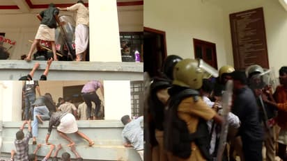 കേരള സര്വകലാശാല ആസ്ഥാനത്ത് രാവിലെ തുടങ്ങിയ പ്രതിഷേധം തെരിവിലേക്ക് നീങ്ങി. രാവിലെ കവാടത്തിന് മുന്നിലെ പൊലീസ് ബാരിക്കേഡും മറികടന്ന് പ്രവര്ത്തകര് സർവകലാശാല ആസ്ഥാനം കയ്യടക്കിയിരുന്നു. പ്രതിഷേധക്കാർക്ക് നേരെ പൊലീസ് ജലപീരങ്കി പ്രയോഗിച്ചു. ബാരിക്കേഡും ജലപീരങ്കിയും മറികടന്നെത്തിയ പ്രതിഷേധക്കാര് രജിസ്ട്രാറുടെ ഓഫീസിന് മുന്നില് സംഘടിച്ച് പ്രതിഷേധിച്ചു. ഉച്ചയോടെ യൂണിവേഴ്സിറ്റി യൂണിയന് ചെയര്മാന് അശ്വിനെ പൊലീസ് അറസ്റ്റ് ചെയ്തതോടെ പ്രവര്ത്തകര് പ്രതിഷേധ മാര്ച്ച് നടത്തി.