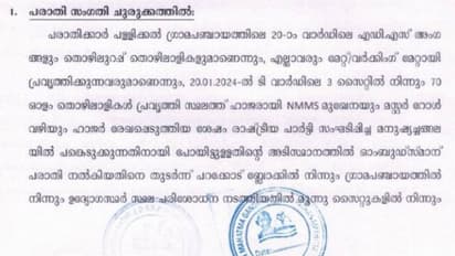 ജനുവരി 20ന് പള്ളിക്കൽ പഞ്ചായത്തിലെ 20ആം വാർഡിലാണ് സംഭവം നടന്നത്. മൂന്ന് സൈറ്റുകളിൽ നിന്നായി എഴുപതോളം തൊഴിലാളികള് പ്രവൃത്തി സ്ഥലത്തെത്തി എന്എംഎംഎസ് മുഖേനയും മസ്റ്റർ റോൾ വഴിയും ഹാജർ രേഖപ്പെടുത്തിയ ശേഷം മനുഷ്യച്ചങ്ങലയിൽ പങ്കെടുക്കാൻ പോയെന്നായിരുന്നു പരാതി. തൊഴിലുറപ്പ് ജോലിക്ക് മേൽനോട്ടം വഹിക്കേണ്ട മൂന്ന് മേറ്റുമാർ ഉള്പ്പെടെയാണ് ഹാജർ രേഖപ്പെടുത്തി ജോലി ചെയ്യാതെ മനുഷ്യ ചങ്ങലയ്ക്ക് പോയത്.