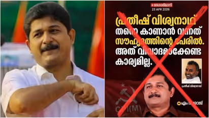 അതിന് മുമ്പ് എന്നെ മുസ്ലിം വർഗ്ഗീയവാദികളുടെ ആളായി ചിത്രീകരിച്ച് വ്യക്തിഹത്യ നടത്തിയത് സംഘപരിവാരമായിരുന്നു. ഇരുവർഗ്ഗീയതയും ഒരുപോലെ എന്നെ ആക്രമിക്കുന്നതിൽ സന്തോഷമേയുള്ളു. ഒരു വർഗ്ഗീയവാദി എന്നെ സന്ദർശിച്ചത് സൗഹൃദം കൊണ്ടാണെന്നും അത് വിവാദമാക്കരുതെന്നും ഞാൻ പറഞ്ഞതായി എൻ്റെ ചിത്രം വെച്ച് 'ദേശാഭിമാനി'യുടെ പേരിൽ വ്യാജ കാർഡ് ഉണ്ടാക്കിയാണ് ഇപ്പോഴത്തെ നുണപ്രചാരണം. വെള്ളം ചേർക്കാത്ത ഇത്തരം കള്ളങ്ങളാണ് വർഗ്ഗീയവാദികളുടെ ആയുധം.