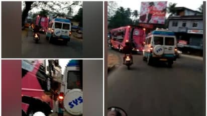 കോഴിക്കോട് നിന്നും ആംബുലൻസിനു എമർജൻസി വിളിച്ച പ്രകാരം കേസ് എടുക്കാൻ പോകുന്ന വഴി ഈങ്ങാപ്പുഴയിൽ വച്ച ഡിഎൽടി എന്ന ടൂറിസ്റ്റ് കമ്പനിയുടെ എൻഎൽ 01 ബി 1671 നമ്പർ ബസാണ് സൈഡ് കൊടുക്കാതിരുന്നത്. ഇത് ചോദ്യം ചെയ്തപ്പോൾ ബസിന്റെ ഡ്രൈവറും ക്ലീനറും ചേര്ന്ന് ആംബുലൻസ് ഡ്രൈവര്ക്കൊപ്പമുണ്ടായിരുന്നയാളെ മർദിച്ച് പരിക്കേല്പിക്കുകയായിരുന്നു. ആംബുലൻസിന് പിറകിലായി ബൈക്കിൽ വന്നവർ സംഭവത്തിന്റെ വീഡിയോ ദൃശ്യങ്ങൾ പകർത്തിയിരുന്നു.