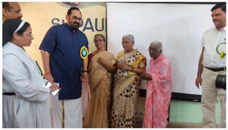പിന്നാലെയുണ്ടായത് ഏറെ വൈകാരികമായ മുഹൂർത്തം. സ്റ്റേജിന് മുന്നിൽ ഒരു പഴയ ചിത്രമുണ്ടായിരുന്നു. 53 കൊല്ലം മുമ്പത്തെ ബോർഡിങ് സ്കൂളിലെ ചിത്രം. അതിൽ മുൻ നിരയിൽ രാജീവ് ചന്ദ്രശേഖർ. ഫോട്ടോ കാണുന്നതിനിടെ പഴയ വിദ്യാർഥികളെക്കാണാൻ മൂന്ന് അമ്മമാരെത്തി. റോസിലി, പൗളി, ട്രീസ. സെന്റ് പോൾസ് ബോർഡിങ് സ്കൂളിലെ ആയമാരായിരുന്നു മൂന്നുപേരും. രാജീവ് ചന്ദ്രശേഖറിനെ ബോർഡിങ് സ്കൂളിൽ പരിചരിച്ചിരുന്നത് റോസിലിയായിരുന്നു. റോസിലിയെ ചേർത്തു നിർത്തി കേന്ദ്രമന്ത്രി പഴയ ഓർമ്മ പുതുക്കി. അന്നത്തെ വിദ്യാര്ത്ഥി കേന്ദ്ര മന്ത്രിയായതിൽ അഭിമാനമുണ്ടെന്ന് റോസിലി പറഞ്ഞു.