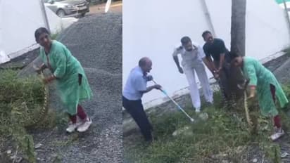 ഹരീന്ദർ എസ് സിഖ എന്ന നേവി ഉദ്യോഗസ്ഥനാണ് പെരുമ്പാമ്പിനെ പിടികൂടുന്ന വിദ്യയുടെ ദൃശ്യങ്ങൾ ട്വിറ്ററിൽ പങ്കുവച്ചത്. വീഡിയോ കണ്ട എല്ലാവരും വിദ്യയുടെ ധൈര്യത്തെ പുകഴ്ത്തുകയാണ്. മുതിർന്ന നേവി ഉദ്യോഗസ്ഥന്റെ ഭാര്യയായ വിദ്യ ബിഹാർ സ്വദേശിയാണ്.
