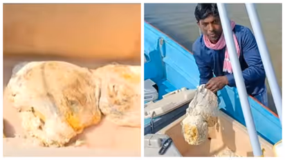കൊല്ലം: മത്സ്യ ബന്ധനത്തിനായ് കടലിൽ പോയ പരമ്പരാഗത മത്സ്യ തൊഴിലാളികൾക്ക് വലയിൽ ലഭിച്ചത് കോടികൾ വിലമതിക്കുന്ന തിമിംഗല ഛർദ്ദി. 'അമ്മ അപ്പാ, ഫൈബർ ബോട്ടിൽ വാടി കടപ്പുറത്ത് നിന്നും കടലിൽ പോയ കൊല്ലം ജോനകപുറം സ്വദേശി അശോക് കുമാറിന്റെയും സംഘത്തിന്റെയും വലയിലാണ് "ഒഴുകുന്ന പൊന്ന് " കയറി പറ്റിയത്. കടലിൽ നിന്നും ഏകദേശം 29 കിലോമീറ്റർ ദൂരെ നിന്നാണ് ഇത് ലഭിച്ചത്. രണ്ടു ഭാഗത്തായി കിടന്ന വസ്തു വലയിലാക്കി ഇവർ ബോട്ടിൽശേഖരിക്കുകയായിരുന്നു.
