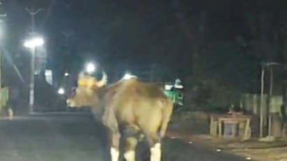ആലപ്പുഴ: കഴിഞ്ഞ ആറു വർഷമായി കാട്ടുപന്നി ശല്യം അതിരൂക്ഷമായി തുടരുന്ന ചാരുംമൂട് മേഖലയിൽ കാട്ടുപോത്തും എത്തിയത് നാട്ടുകാരെ ഭീതിയിലാഴ്ത്തി. ചൊവ്വാഴ്ച പുലർച്ചെ മൂന്നരയോടെ കെ പി റോഡിലെ പ്രസി സാനറ്റോറിയത്തിന്റെ മതിൽ അവസാനിക്കുന്ന ഭാഗത്താണ് യാത്രക്കാർ കാട്ടുപോത്തിനെ കണ്ടത്. കാറിൽ ചെട്ടികുളങ്ങര അമ്പലത്തിലേക്ക് പോകുകയായിരുന്ന ഫോട്ടോഗ്രാഫർമാരായ ഷാജി ഡേലൈറ്റും സന്തോഷ് ഫോട്ടോ വേൾഡും ചേർന്നാണ് ഇതിന്റെ ദൃശ്യങ്ങൾ പകർത്തിയത്. വാഹനം അടുത്തെത്തിയതോടെ കാട്ടുപോത്ത് ടെലിഫോൺ എക്സ്ചേഞ്ചിന് കിഴക്കുവശത്ത് അതിരില്ലാത്ത കാടുപിടിച്ച പറമ്പിലേക്ക് ഇറങ്ങിപ്പോവുകയായിരുന്നു.