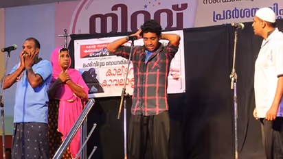 ഇടുക്കി: മന്ത്രിസഭ വാര്ഷികത്തോടനുബന്ധിച്ച് ചെറുതോണിയില് നടന്നുവരുന്ന നിറവ് 2018ന്റെ വേദിയില് എക്സൈസ് ഉദ്യോഗസ്ഥര് അവതരിപ്പിച്ച 'കാലിടറാതെ കാവലാളാകാം' എന്ന നാടകം ഏറെ ശ്രദ്ധേയമായി. ചിരിയും ചിന്തയും ഒരുപോലെ ഉണര്ത്തി പ്രേക്ഷകശ്രദ്ധ പിടച്ചുപറ്റാന് നാടകത്തിനു സാധിച്ചു. ജോലിക്കിടയിലും സാമൂഹ്യപ്രതിബദ്ധതയോടെ നാടകവേദികളില് എത്തുന്ന ഉദ്യോഗസ്ഥര് നാല്പതാമത്തെ വേദിയിലാണ് ഇക്കുറി നാടകം അവതരിപ്പിച്ചത്.