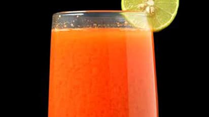 രണ്ടു മീഡിയം ക്യാരറ്റ് തൊലി ചെത്തി കഷണങ്ങള് ആക്കി എടുത്തതും ഒരു ചെറിയ കഷണം ഇഞ്ചിയും കൂടി കുറച്ചു തണുത്ത വെള്ളം ചേര്ത്ത് ഒരു ബ്ലെണ്ടറില് അടിച്ചെടുത്തു അരിപ്പയില് അരിച്ചു എടുക്കുക. ഇതിലേക്ക് ഒരു നാരങ്ങ പിഴിഞ്ഞ് ഒഴിയ്ക്കുക. ഇനി മധുരം വേണ്ടവര്ക്ക് പഞ്ചസാര മധുരം അനുസരിച്ച് ചേര്ക്കാം. ഒരു ഗ്ലാസില് ഐസ് ക്യൂബ്സ് ഇട്ടതിനു ശേഷം ജ്യുസ് ഒഴിച്ച് സെര്വ് ചെയ്യുക.