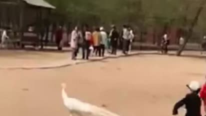 തൂവല് പറിക്കാന് ഓടിക്കുന്ന കുട്ടികളില് നിന്ന് രക്ഷപെടാന് പരക്കം പായുന്ന വെള്ള മയില്. കുട്ടികളുടെ തമാശ കണ്ട് രസിക്കുന്ന രക്ഷിതാക്കള്. വീഡിയോകാണുന്ന ആര്ക്കും ജീവനും കൊണ്ട് പായുന്ന മയിലിന്റെ അവസ്ഥ കൃത്യമായി മനസിലാകുന്ന വീഡിയോയാണ് പുറത്ത് വന്നിരിക്കുന്നത്.