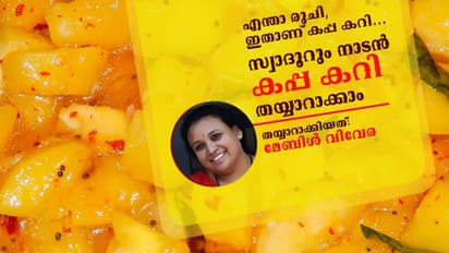 ആദ്യം വൃത്തിയാക്കിയ കപ്പ ചെറിയ കഷ്ണങ്ങളാക്കി ഉപ്പ് ചേർത്ത് പാകത്തിന് വെള്ളത്തിൽ വേവിക്കുക. ശേഷം വെള്ളം ഊറ്റിക്കളയാം.