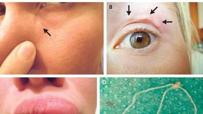 32 വയസ്സു മാത്രം പ്രായമുള്ള ഒരു റഷ്യക്കാരി. ആദ്യം കണ്ണിന് താഴെയായി ഒരു ചെറിയ തടിപ്പാണ് കണ്ടത്. പിന്നീടാണ് അത് മുഖം മുഴുവന് കറങ്ങുന്നതായി മനസ്സിലായത്. കണ്ണിനു മുകളിലും കവിളിലും ചുണ്ടിലും വരെ വിര കറങ്ങിയെത്തി. രണ്ടാഴ്ചയിലേറെ ഇതേ അവസ്ഥയുമായി അവര് ജീവിച്ചു. വിശദമായ പരിശോധനയിലാണ് അത് ജീവനുള്ള ഒരു വിരയാണെന്ന് കണ്ടെത്തിയത്.