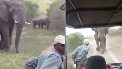 അവര് വാഹനം പുറകിലേക്ക് ഓടിച്ചും, വഴി മാറ്റി ഓടിച്ചുമെല്ലാം ആനയെ പ്രകോപിപ്പിച്ചുകൊണ്ടിരുന്നു. ഒടുവില് ഒരുകൂട്ടം ആനകള്ക്കിടയില് നിന്ന് അവര് രക്ഷപ്പെടുന്നു. ഫേസ്ബുക്കില് നിന്ന് മാത്രം അയ്യായിരത്തിലധികം പേരാണ് വീഡിയോ ഷെയര് ചെയ്തത്.