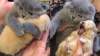 വ്യത്യസ്തമായ പല തരം വീഡിയോകളാണ് ദിവസവും നാം സോഷ്യൽ മീഡിയയിലൂടെ കാണുന്നത്. ഇവയിൽ മൃഗങ്ങളുടെ വീഡിയോകൾക്ക് കാഴ്ചക്കാരേറെയാണ്. അത്തരമൊരു ക്യൂട്ട് വീഡിയോ ആണ് ഇപ്പോള് സൈബര് ലോകത്ത് ഹിറ്റാകുന്നത്. ഒരു വളര്ത്തുപൂച്ചയുടെയും നായ്ക്കുട്ടിയുടെയും വീഡിയോ ആണിത്.