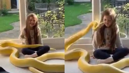 വീട്ടിൽ പട്ടിയോ പൂച്ചയോ നമ്മൾ വളർത്താറുണ്ടല്ലോ. പാമ്പിനെ വളർത്തുന്നത് കണ്ടിട്ടുണ്ടോ...അതേ, ഒരു പടുകൂറ്റൻ പെരുമ്പാമ്പിനൊപ്പം കളിക്കുന്ന പെൺകുട്ടിയുടെ വീഡിയോയാണ് ഇപ്പോൾ സോഷ്യൽ മീഡിയയിൽ വൈറലായിരിക്കുന്നത്. വീഡിയോ കണ്ടവരൊക്കെ ശരിക്കുമൊന്ന് ഞെട്ടിപ്പോയി എന്ന് വേണം പറയാൻ.