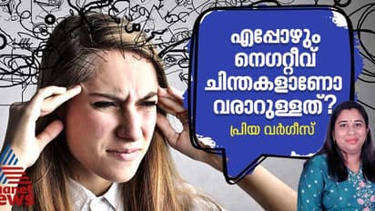 എപ്പോഴും നെഗറ്റീവ് ചിന്തകളാണ് വരാറുള്ളതെന്ന് പലരും പറയാറുണ്ട്. നെഗറ്റീവ് ചിന്തകളെ ഇല്ലാതാക്കാനും ആ സമയത്തെ മാനസികാവസ്ഥയെ തരണം ചെയ്യാനുമെല്ലാം നിങ്ങൾ ചെയ്യേണ്ട ചില കാര്യങ്ങളെ കുറിച്ച് ക്ലിനിക്കൽ സൈക്കോളജിസ്റ്റ് പ്രിയ വർഗീസ് എഴുതുന്ന ലേഖനം.