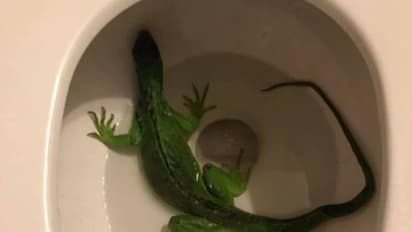 ടോയ്ലറ്റിലെ ക്ലോസ്റ്റില് നീന്തുന്ന ഭീമന് പല്ലിയുടെ ചിത്രങ്ങളും സോഷ്യല് മീഡിയയിലൂടെ വൈറലായി. നിരവധി പേര് ചിത്രം ഷെയര് ചെയ്തു. പല്ലിയെ ജീവനോടെ പുറത്തെടുത്ത ചിത്രങ്ങളും പുറത്തുവന്നു.
