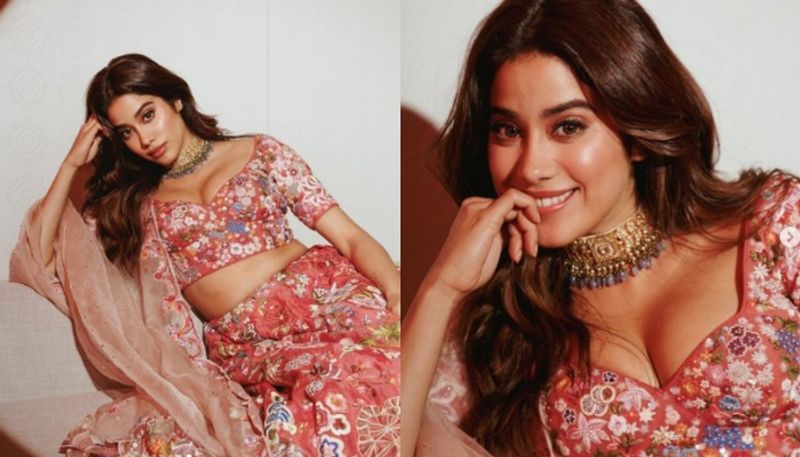 ജാന്വി തന്നെയാണ് ചിത്രങ്ങള് തന്റെ ഇന്സ്റ്റഗ്രാമിലൂടെ പങ്കുവച്ചത്. ഫ്ലോറൽ ഡിസൈനിലുള്ള പിങ്ക് ചോളി ലെഹങ്കയില് മനോഹരിയായിരിക്കുകയാണ് ജാൻവി. ഡീപ് നെക്കുള്ള ബ്ലൗസ് ആണ് ഔട്ട്ഫിറ്റിന്റെ പ്രത്യേകത.