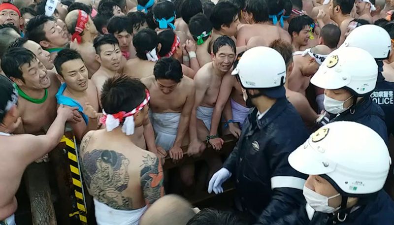 ആചാരങ്ങളുടെ ഭാഗമായി ക്ഷേത്രത്തിലെ പുരോഹിതന് രണ്ട് ഭാഗ്യ ദണ്ഡുകളും 100 ബണ്ടില് മരച്ചില്ലകളും വലിച്ചെറിയും. ഇവ കണ്ടെത്തുന്നവർക്ക് ഭാഗ്യം കൈവരുമെന്നാണ് ജപ്പാൻകാരുടെ വിശ്വാസം. ഈ ചടങ്ങ് അരമണിക്കൂര് നീണ്ടു നില്ക്കും.മരച്ചില്ലകളും ദണ്ഡുകളും കൈക്കലാക്കുന്നതിനിടെ ഭക്തര്ക്ക് പരിക്കേൽക്കുന്നത് സാധാരണമാണ്.