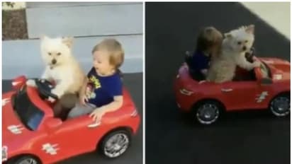 നായകളുടെ രസകരമായ വീഡിയോകൾ സോഷ്യൽ മീഡിയയിൽ പ്രത്യക്ഷപ്പെടാറുണ്ട്. ഇപ്പോഴിതാ, ഒരു നായ്ക്കുട്ടിയുടെ വീഡിയോ ഏറെ ശ്രദ്ധപിടിച്ച് പറ്റിയിരിക്കുകയാണ്. ടോയ് കാറിലിരുന്ന് ഒരു കുട്ടിയും നായ്ക്കുട്ടിയും യാത്ര ചെയ്യുന്ന വീഡിയോയാണ് ഇപ്പോൾ സോഷ്യൽ മീഡിയയിൽ വൈറലാകുന്നത്.