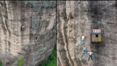 ഒറ്റനോട്ടത്തില് ആരെങ്കിലും ചെങ്കുത്തായ പാറയിടുക്കിലേക്ക് വീണ്, അവരെ രക്ഷപ്പെടുത്താനുള്ള ശ്രമം ആണ് നടക്കുന്നത് എന്ന് നാം ചിന്തിക്കാം. പക്ഷേ സംഗതി, മല കയറാനെത്തിയ സാഹസികരായ ടൂറിസ്റ്റുകള് കയറില് തൂങ്ങി ഈ സ്റ്റോറിലെത്തി സാധനങ്ങള് വാങ്ങിക്കുന്നതാണ് കാണുന്നത്. ഇത്തിരിയൊന്ന് നെഞ്ചിടിപ്പ് തോന്നാതിരിക്കില്ല ഇത് കാണുമ്പോള്. അതേസമയം സാഹസികതയോട് താല്പര്യമുള്ളവരാണെങ്കില് തീര്ച്ചയായും അവരെ രസിപ്പിക്കുന്ന കാഴ്ചയാണിത്.
