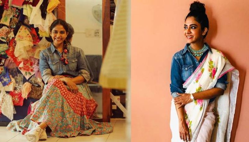 മറ്റൊരു ചിത്രത്തില് ഡെനിം ഷര്ട്ടിനോടൊപ്പം സാരിയാണ് താരം ധരിച്ചിരിക്കുന്നത്. ഒപ്പം ഒരു ഹെവി ചോക്കറും കൂടിയായപ്പോള് താരത്തിന്റെ ലുക്ക് കംപ്ലീറ്റായി. ഡെനിം ഇപ്പോഴും ഫാഷനാണ് എന്നുകൂടി സൂചിപ്പിക്കുകയാണ് ഈ ചിത്രങ്ങള്.