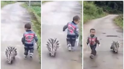 പകുതി വഴി ചെന്നിട്ട് കുട്ടി തിരിച്ചു നടക്കുമ്പോൾ മുള്ളൻപന്നിയും കൂടെ തിരിച്ചു നടക്കുന്നുണ്ട്. കുട്ടിയുടെ ഏറ്റവും അടുത്ത കൂട്ടുകാരനാണ് ഈ മുള്ളൻപന്നി എന്ന് വീഡിയോയിലെ ദൃശ്യങ്ങളിൽ നിന്ന് വ്യക്തമാണ്. പ്രവീൺ കസ്വാൻ ഐഎഫ്എസ് എന്നയാളാണ് ഈ വീഡിയോ ട്വിറ്ററിൽ പങ്കുവച്ചിരിക്കുന്നത്. സ്ഥലമോ മറ്റ് വിവരങ്ങളോ വ്യക്തമല്ല.