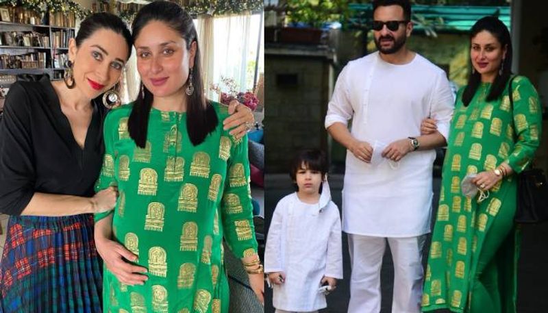 കുടുംബവുമൊത്തുള്ള ക്രിസ്മസ് ആഘോഷത്തിന് പച്ച നിറത്തിലുള്ള കുര്ത്തയാണ് കരീന ധരിച്ചത്. മസാബ ഗുപ്തയാണ് ഈ കുര്ത്ത ഡിസൈന് ചെയ്തിരിക്കുന്നത്. ഗോര്ഡ് നിറത്തിലുള്ള പ്രിന്റുകളാണ് കുര്ത്തയുടെ പ്രത്യേകത.