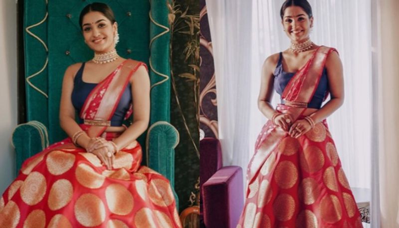 ബൺ സ്റ്റൈലിൽ കെട്ടിയ മുടിയിൽ മുല്ലപ്പൂ ചൂടിയിരുന്നു. ഇതിനൊപ്പം ഹെവി സ്റ്റൈലിഷ് ചോക്കറും വളകളും മോതിരവും ചേര്ന്നപ്പോള് ലുക്ക് കംപ്ലീറ്റായി. പൂര്ണ്ണിമ ഇന്ദ്രജിത്തിന്റെ പ്രാണയാണ് സാനിയയ്ക്ക് വേണ്ടി വസ്ത്രം ഒരുക്കിയത്.