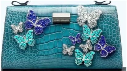 ഈ ആഡംബര ബാഗിന്റെ വില എത്രയാണെന്നോ... 52 കോടി രൂപ. ചീങ്കണ്ണിയുടെ തോൽ ഉപയോഗിച്ചാണ് ഈ ബാഗിന്റെ നിർമാണം. ബാഗിന്റെ ഉൾവശം മിനുസമായ കമ്പളി കൊണ്ടാണ് നിർമിച്ചിരിക്കുന്നത്. പത്ത് വൈറ്റ് ഗോള്ഡ് പൂമ്പാറ്റകളെയാണ് ബാഗിന്റെ പുറത്ത് അലങ്കാരത്തിനായി പതിപ്പിച്ചിരിക്കുന്നത്.