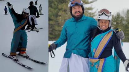 മുണ്ടും സാരിയും ചുറ്റി മഞ്ഞിൽ സ്കീയിംഗ് ചെയ്യുന്ന ദമ്പതികളുടെ വീഡിയോ ആണ് ഇപ്പോള് സോഷ്യല് മീഡിയയില് വൈറലാകുന്നത്. യുഎസിലെ മിനിസോട്ടയിലാണ് ദിവ്യ, മധു എന്നീ ദമ്പതികൾ സ്കീയിംഗ് ചെയ്തത്.
