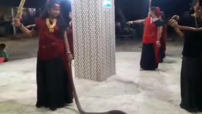 12 വയസ്സുകാരി ഉൾപ്പടെ മൂന്ന് പേർക്കെതിരെയാണ് നടപടിയെടുത്തത്. പരമ്പരാഗത നൃത്തരൂപമായ ഗാര്ബയാണ് അഞ്ചുപേരടങ്ങുന്നം സംഘം അവതരിപ്പിച്ചത്. ഇവരില് മൂന്ന് പേര് മൂര്ഖന് പാമ്പുകളുമായാണ് നൃത്തം അവതരിപ്പിച്ചത്. ഒരു കൈയില് പാമ്പിന്റെ വാല് പിടിച്ച്, മറ്റേ കൈയില് വാള് ഉയര്ത്തിയായിരുന്നു ഒരു സ്ത്രീ നൃത്തം ചെയ്തത്. പാമ്പ് പിടയുന്നതും രക്ഷപ്പെടാന് ശ്രമിക്കുന്നതും വീഡിയോയില് കാണാം.