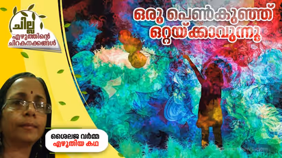 ചില്ല. മികച്ച എഴുത്തുകള്ക്ക് ഒരിടം. സൃഷ്ടികള് submissions@asianetnews.in എന്ന വിലാസത്തില് അയക്കൂ. ഒപ്പം ഫോട്ടോയും വിശദമായ വിലാസവും അയക്കണം. എഡിറ്റോറിയല് ബോര്ഡ് തെരഞ്ഞെടുക്കുന്ന സൃഷ്ടികള് പ്രസിദ്ധീകരിക്കും.