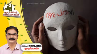 ചില്ല. മികച്ച എഴുത്തുകള്ക്ക് ഒരിടം. സൃഷ്ടികള് submissions@asianetnews.in എന്ന വിലാസത്തില് അയക്കൂ. ഒപ്പം ഫോട്ടോയും വിശദമായ വിലാസവും അയക്കണം. എഡിറ്റോറിയല് ബോര്ഡ് തെരഞ്ഞെടുക്കുന്ന സൃഷ്ടികള് പ്രസിദ്ധീകരിക്കും