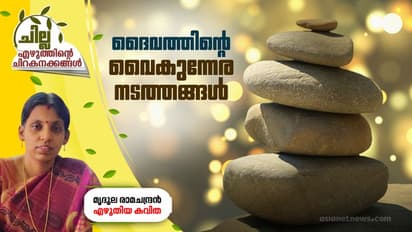 ചില്ല. മികച്ച എഴുത്തുകള്ക്ക് ഒരിടം. സൃഷ്ടികള് submissions@asianetnews.in എന്ന വിലാസത്തില് അയക്കൂ. ഒപ്പം ഫോട്ടോയും വിശദമായ വിലാസവും അയക്കണം. എഡിറ്റോറിയല് ബോര്ഡ് തെരഞ്ഞെടുക്കുന്ന സൃഷ്ടികള് പ്രസിദ്ധീകരിക്കും.