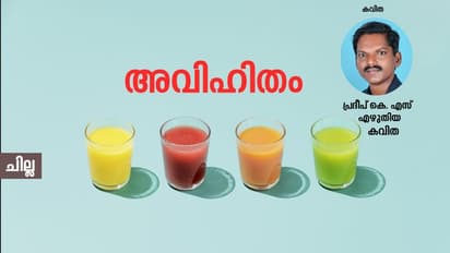 ചില്ല. മികച്ച എഴുത്തുകള്ക്ക് ഒരിടം. സൃഷ്ടികള് submissions@asianetnews.in എന്ന വിലാസത്തില് അയക്കൂ. ഒപ്പം ഫോട്ടോയും വിശദമായ വിലാസവും അയക്കണം. എഡിറ്റോറിയല് ബോര്ഡ് തെരഞ്ഞെടുക്കുന്ന സൃഷ്ടികള് പ്രസിദ്ധീകരിക്കും