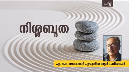 ചില്ല. മികച്ച എഴുത്തുകള്ക്ക് ഒരിടം. സൃഷ്ടികള് submissions@asianetnews.in എന്ന വിലാസത്തില് അയക്കൂ. ഒപ്പം ഫോട്ടോയും വിശദമായ വിലാസവും അയക്കണം. എഡിറ്റോറിയല് ബോര്ഡ് തെരഞ്ഞെടുക്കുന്ന സൃഷ്ടികള് പ്രസിദ്ധീകരിക്കും
